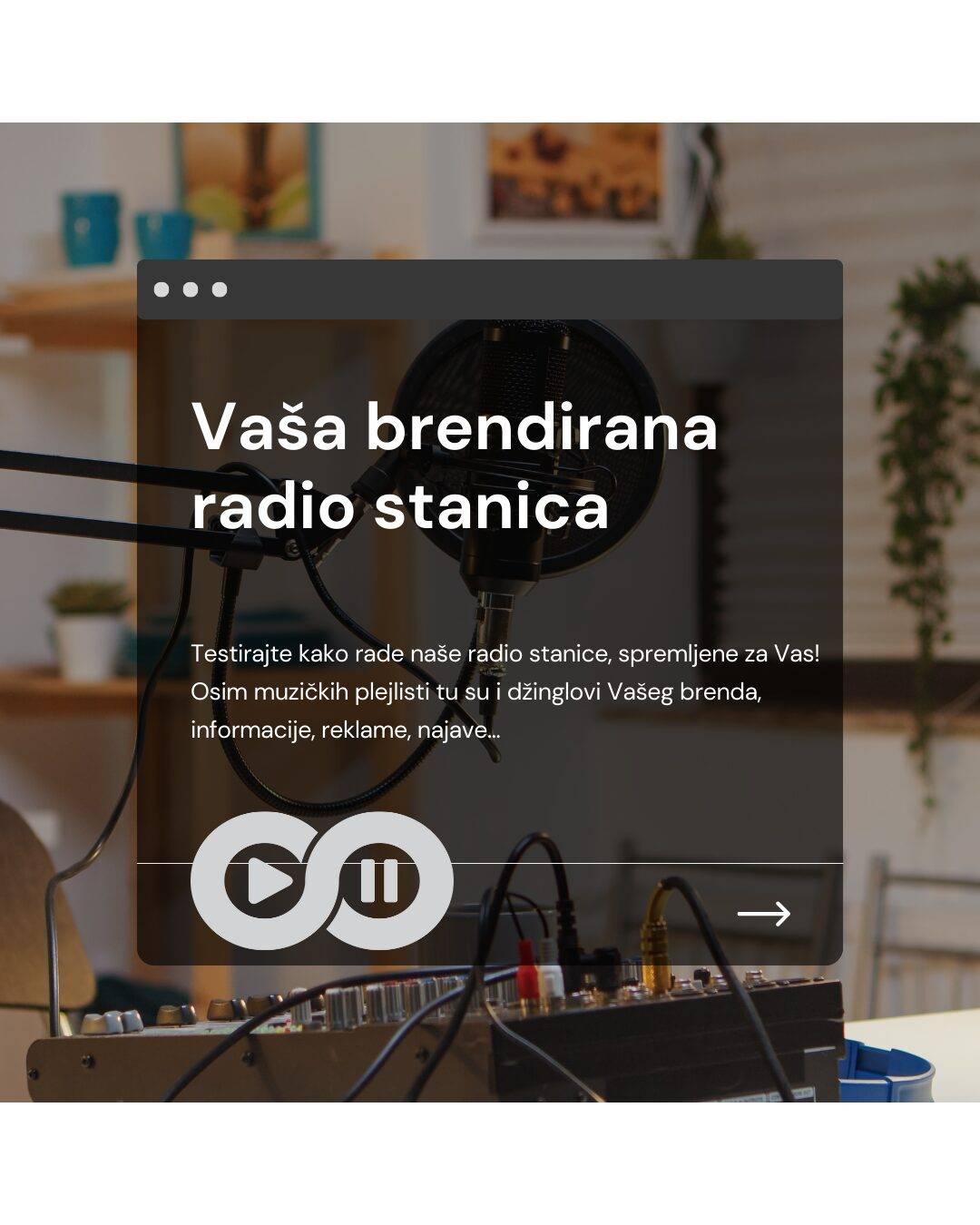 Brendirani radio je audio platforma koja se potpuno prilagođava identitetu vašeg brenda.Bilo da je reč o radijskom programu, muzici ili džinglovima, svaki element je osmišljen kako bi se spojio sa vrednostima, misijom i pričom koju vaš brend želi da ispriča.